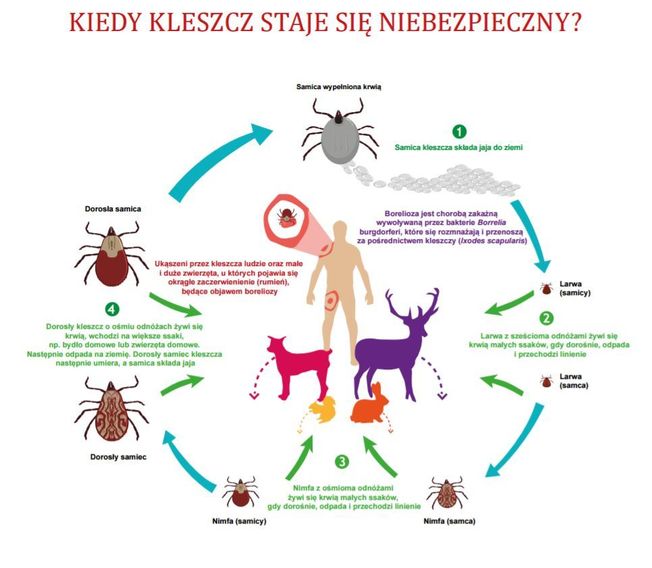 Człowiek dla kleszcza zazwyczaj nie jest pierwszym żywicielem,lecz pośrednim lub ostatecznym (dorosły człowiek ma za grubą skórę by nimfa-pierwsza forma kleszcza, mogła wbić organ ssący w skórę). Oznacza to,że wcześniej żerował na zwierzęciu, które mogło przekazać kleszczowi groźne koinfekcje- patogeny odzwierzęce. A kleszcz człowiekowi.